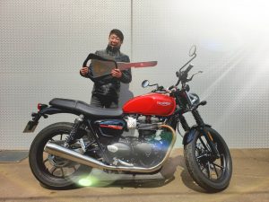 最高の笑顔で大型車&トライアンフデビューとなりました、O君。トライアンフ札幌では、最年少オーナーの19歳! これから、いろいろカスタムしていきましょう!